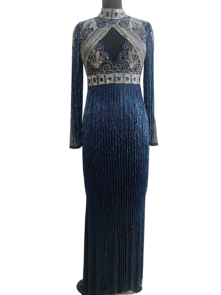 Description:Heavy Hand Embroidery with quality silver blue, sequins and beads