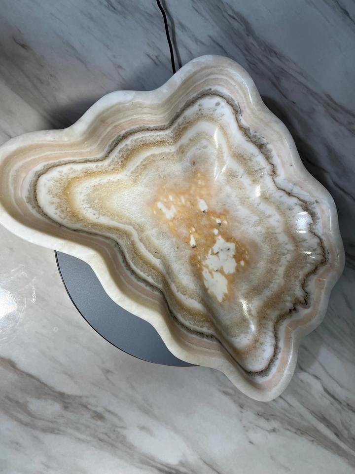 ชามตกแต่งหินอ่อนแวววาวออกแบบด้วยมือถาดวางกลางหินมันวาวเน้นโต๊ะที่หรูหราสำหรับตกแต่งบ้านหรือสำนักงาน