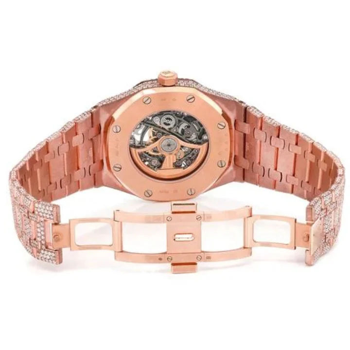 นาฬิกาข้อมือดีไซน์เนอร์หรูหรา ระดับความใส VVS พร้อมเครื่องทดสอบเพชร หน้าปัดสีดำแบบกำหนดเอง ประดับโมอิสซาไนต์โทนสีขาว ตัวเรือนทำมือ