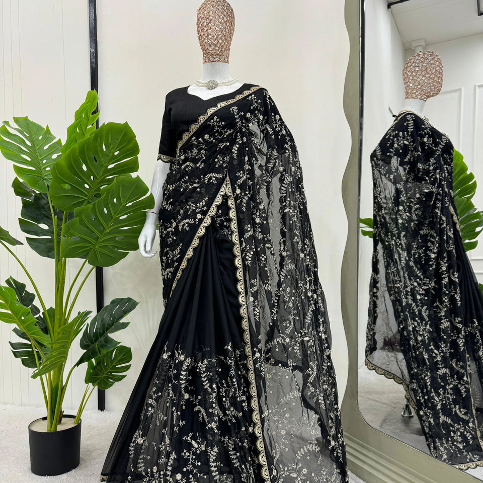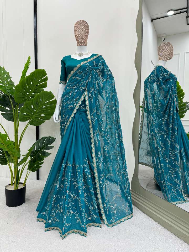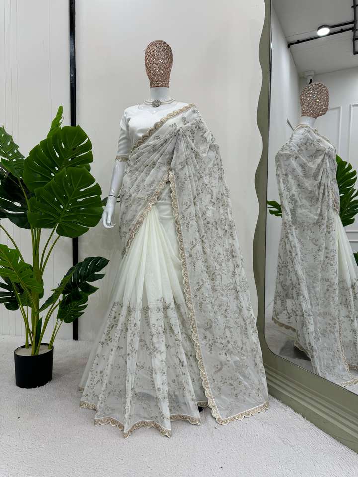 ผ้าส่าหรีผ้าไหมดีไซเนอร์สำหรับสวมใส่ในงานปาร์ตี้แต่งรหัสและลำดับ