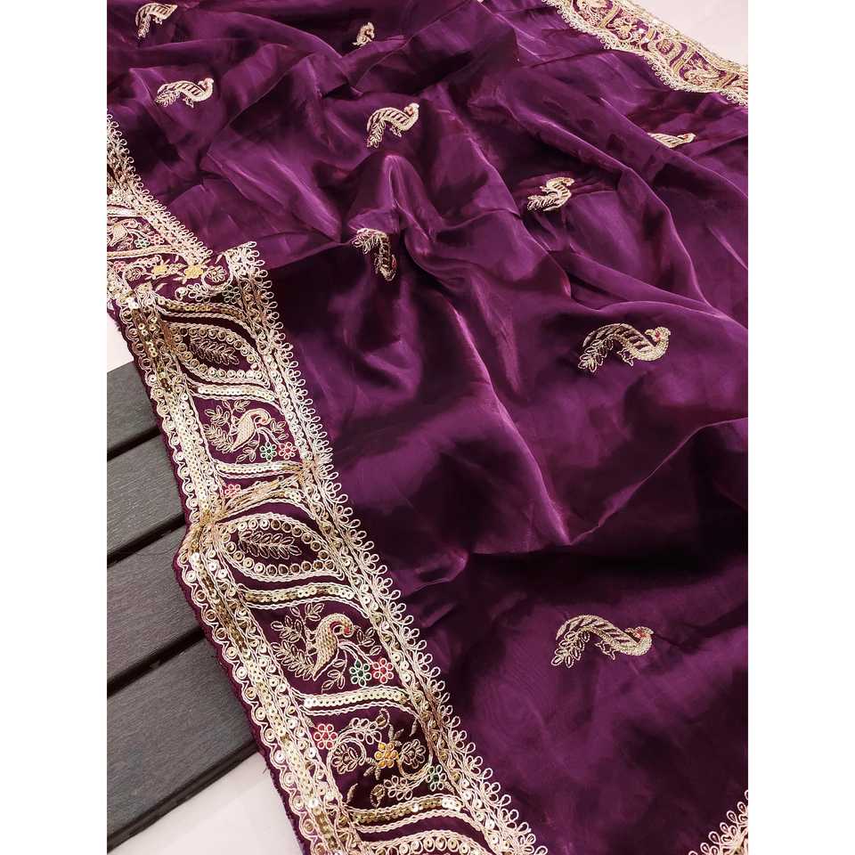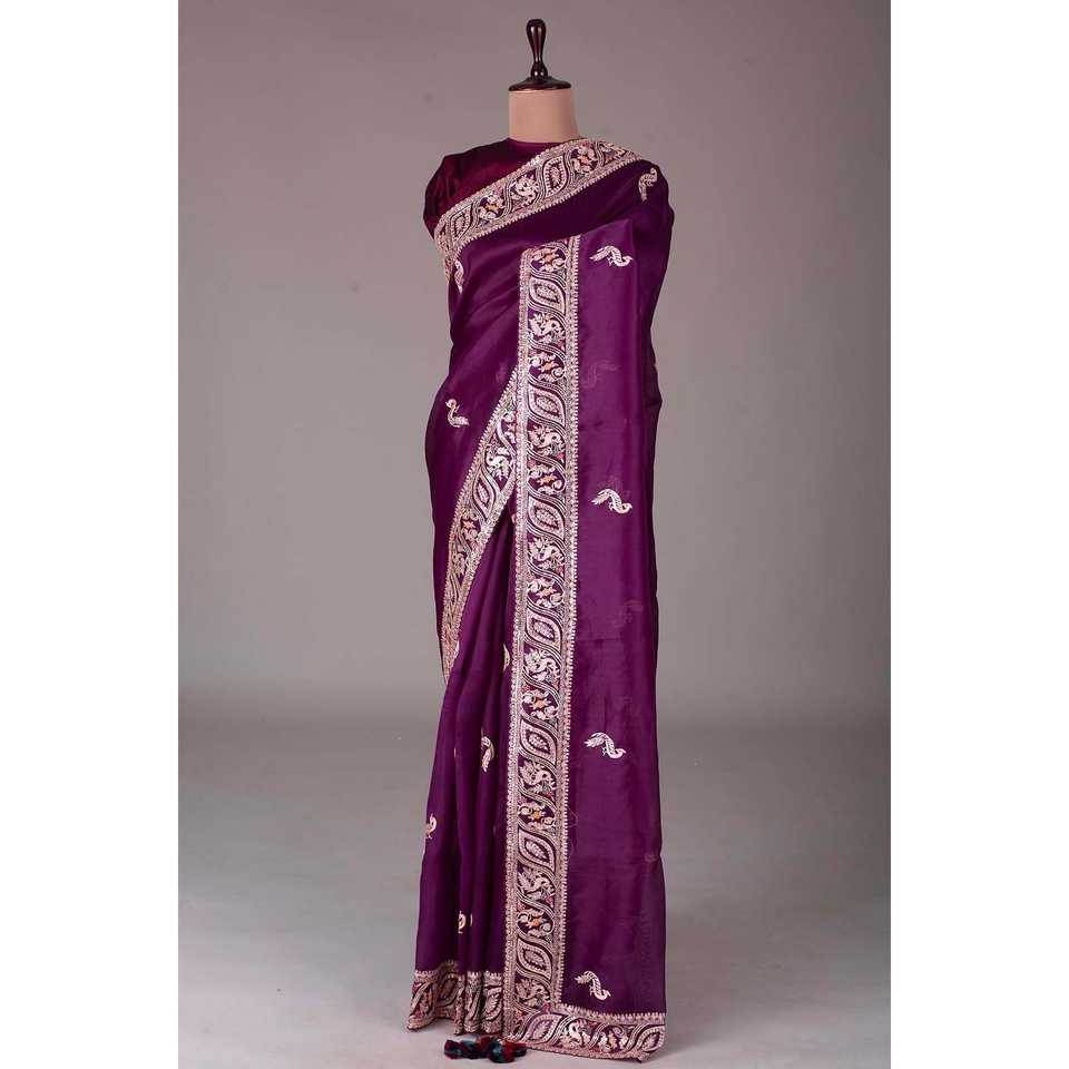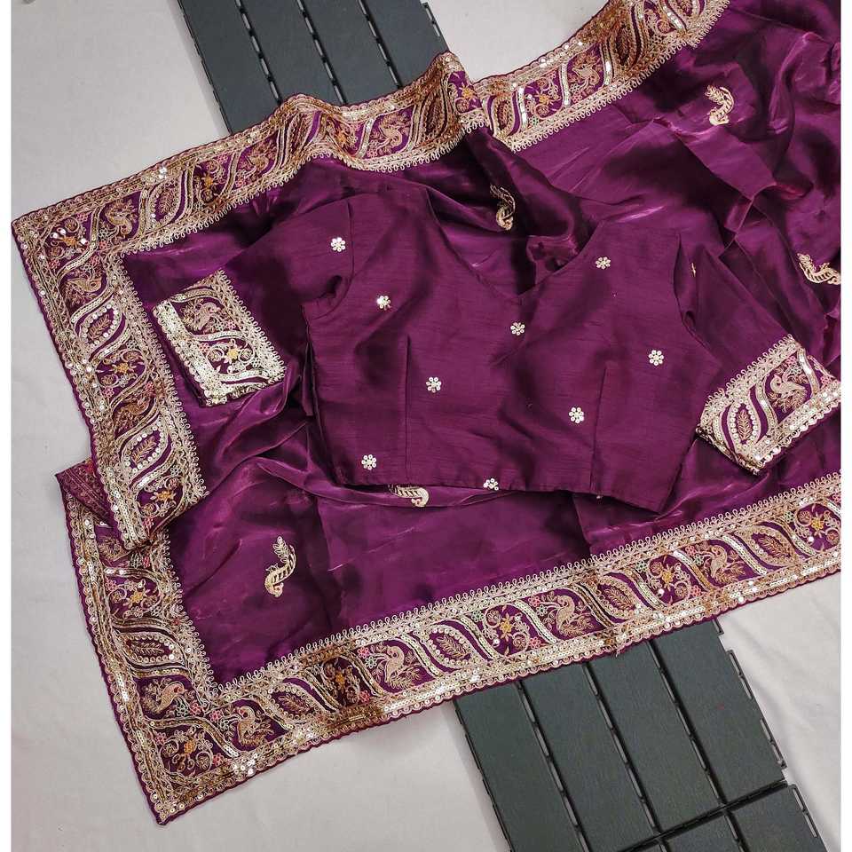 ผ้าส่าหรีผ้าไหมออกแบบสำหรับงานแต่งงานงานปักลายหลายดอกและปักเลื่อม