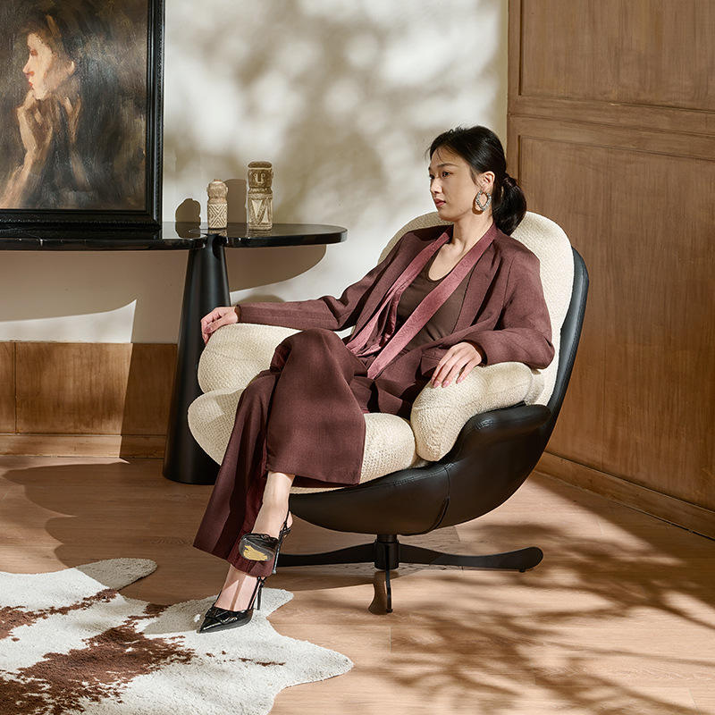 เก้าอี้โซฟาเดี่ยวดีไซน์เนอร์ ปรับเอนได้ หมุนได้ สไตล์เรโทรหรูหราเบาๆ สำหรับห้องนั่งเล่น ห้องนอน ระเบียง เก้าอี้บีนแบ็กเรียบง่ายสบายๆ