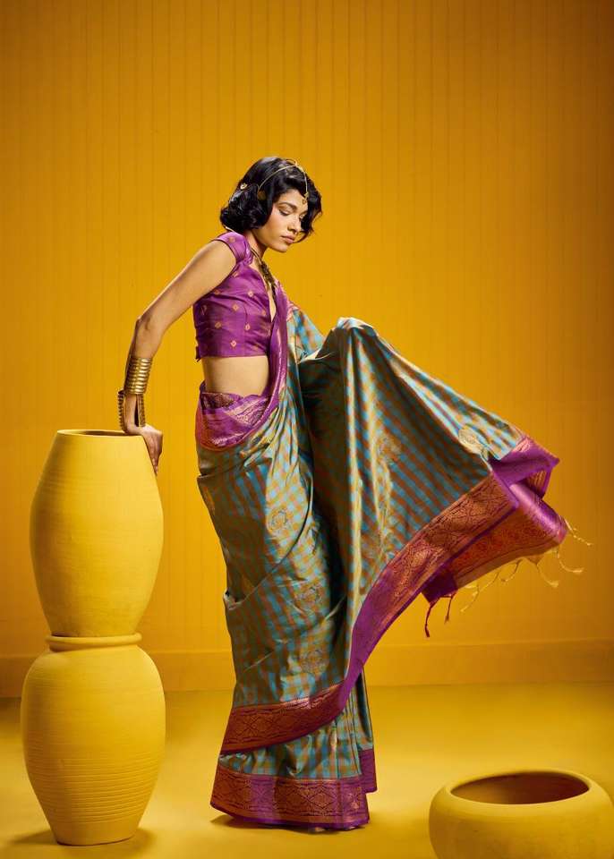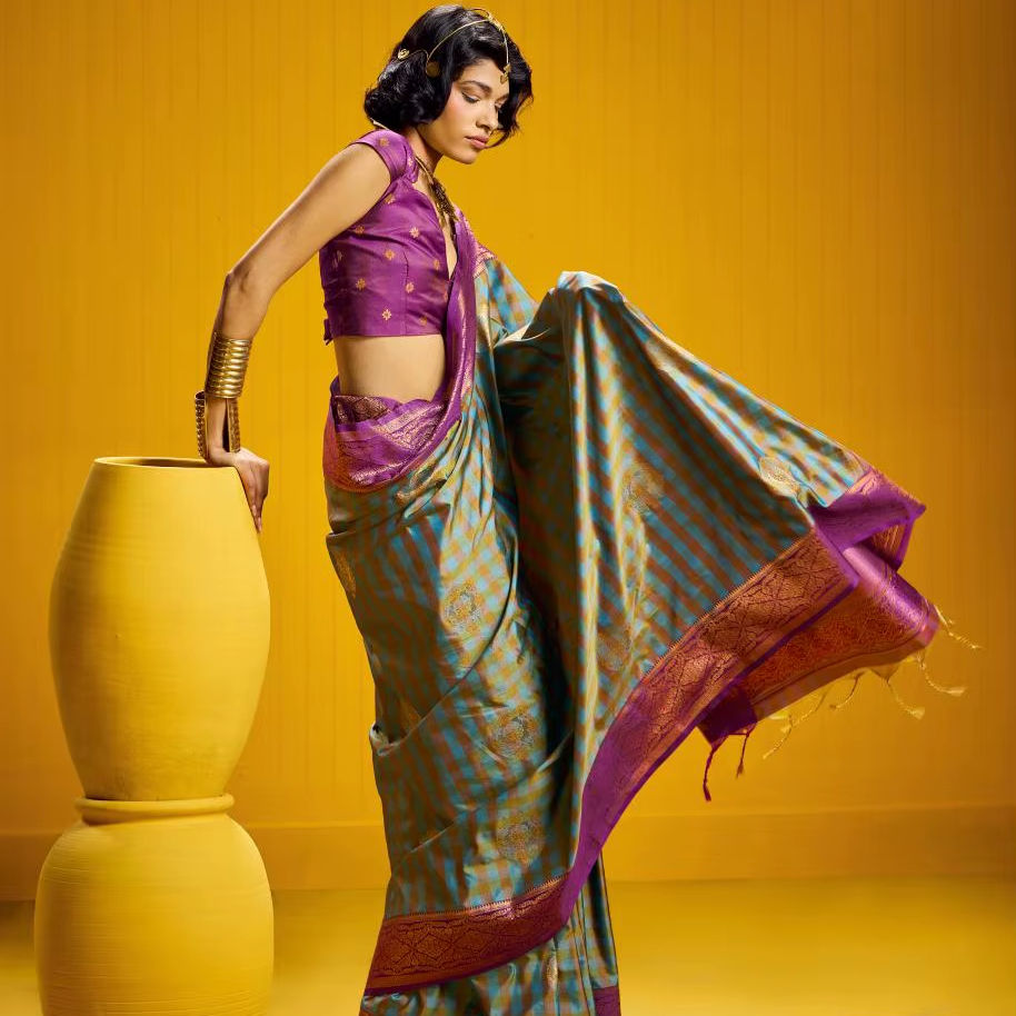 ส่าหรีผ้าไหมทอเนื้อนิ่มดีไซน์เนอร์เสื้อผ้าแบบดั้งเดิมที่มีรายละเอียดดีสำหรับงานปาร์ตี้และงานเทศกาล