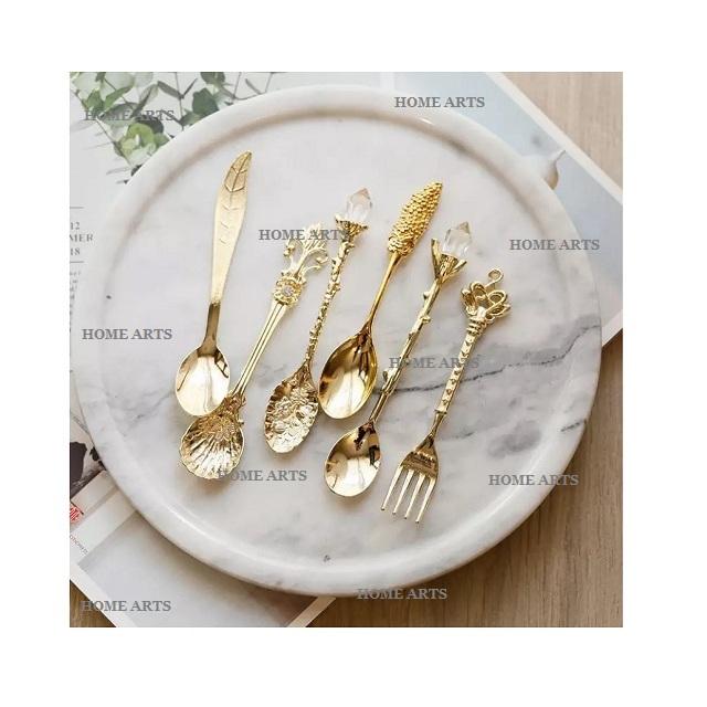 ชุดช้อนส้อมมีดทองเหลืองแข็งดีไซน์เนอร์ชุดเครื่องใช้บนโต๊ะอาหารสีทอง