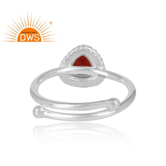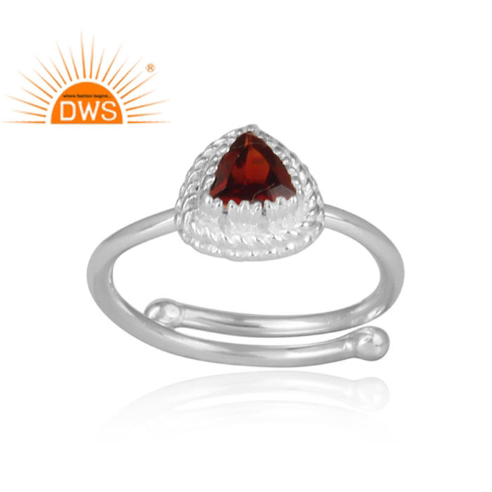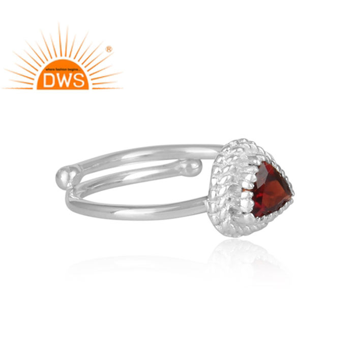 แหวนพลอยโกเมนธรรมชาติสีเงินสเตอร์ลิงสำหรับนักออกแบบคอลเลกชันคลาสสิก