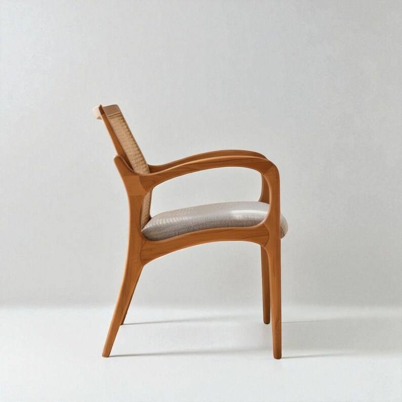 เก้าอี้ไม้เนื้อแข็งดีไซน์เนอร์พร้อมเบาะผ้านุ่มทำจากหวายสานที่ออกแบบตามหลักสรีรศาสตร์และหรูหรา