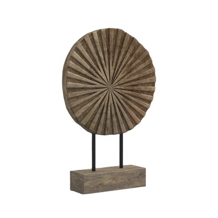 รูปปั้นไม้ธรรมชาติสีน้ำตาลเข้มของนักออกแบบที่วางบนแท่นสำหรับตกแต่งบ้านหรือสำนักงานแบบเรียบง่าย