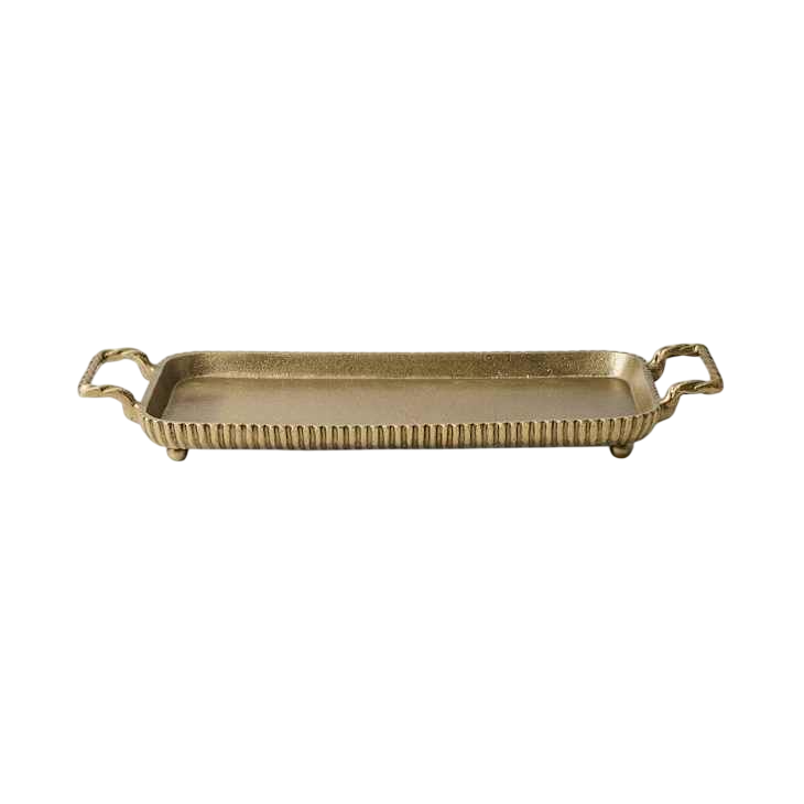 ถาดสแตนเลสดีไซเนอร์พร้อมขอบทองเหลืองหินอ่อนสไตล์โมเดิร์นโบราณกำหนดเองสำหรับตกแต่งบ้านของขวัญ Diwali