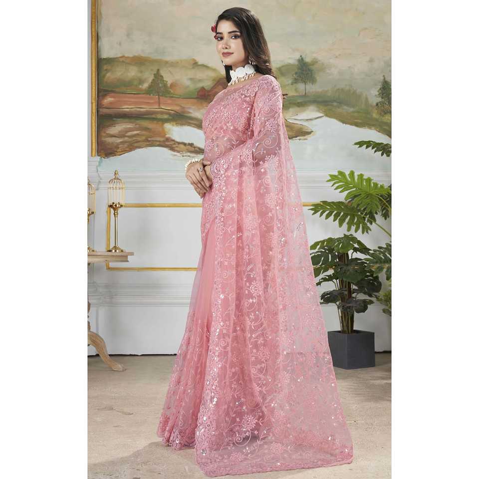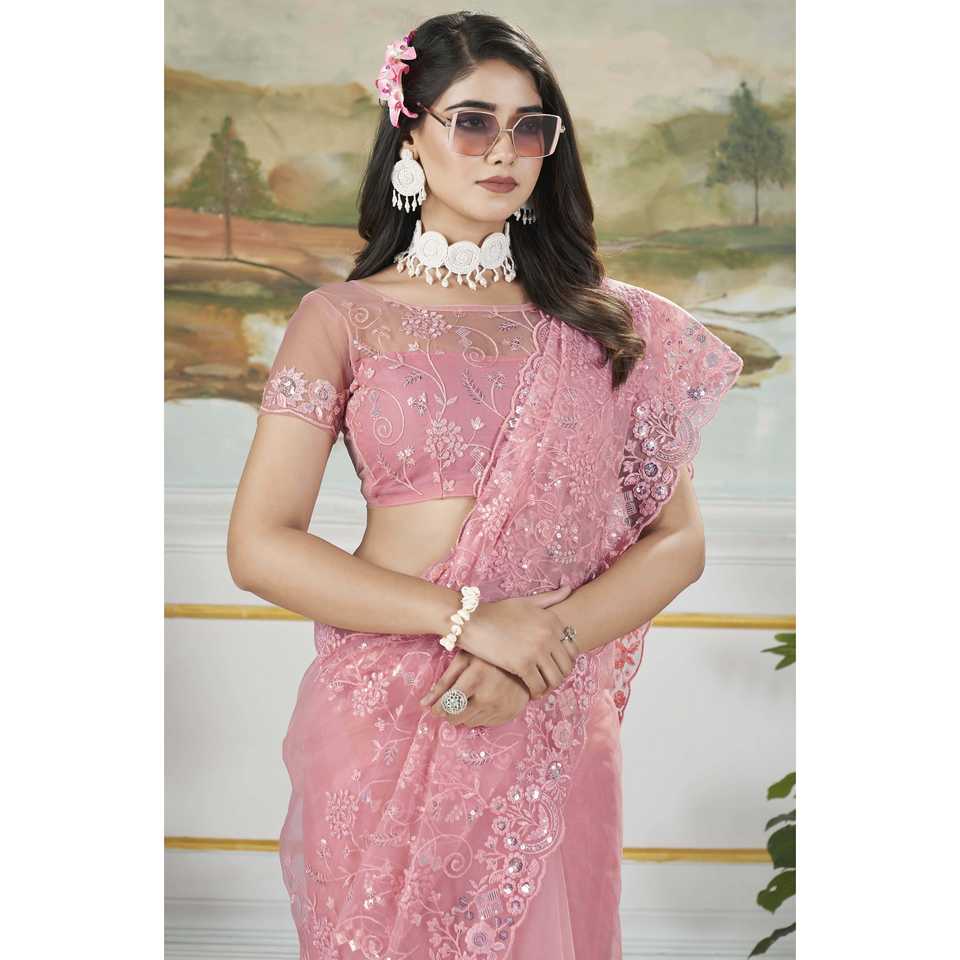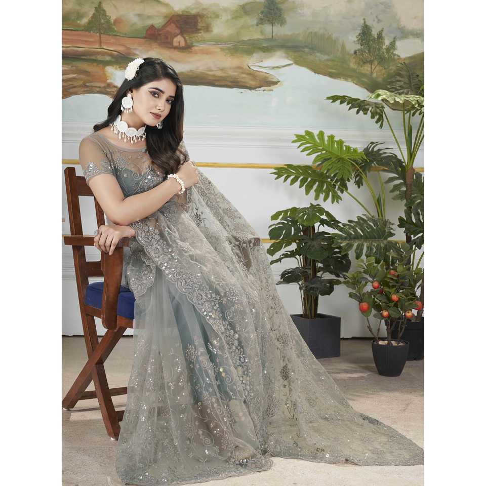 Designer Straight Cut Chiffon Saree with Party Wear Embroidery Elegant Look