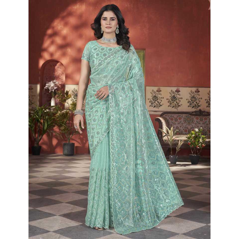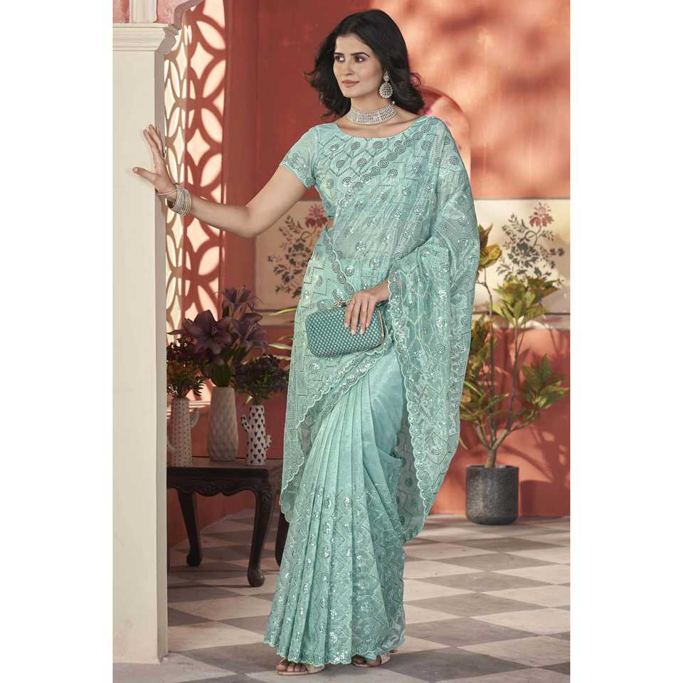 ผ้าชีฟองส่าหรีผ้าชีฟองทรงตรงสำหรับปาร์ตี้หรูหราพร้อมงานปักด้าย