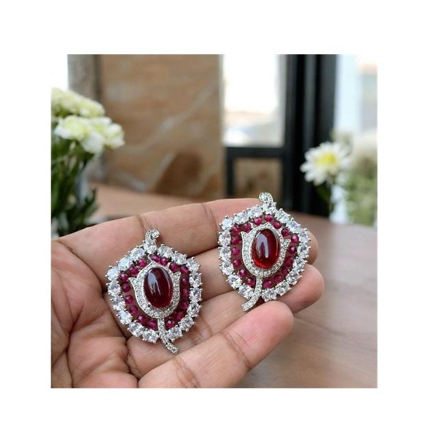 ต่างหูสตั๊ดดีไซเนอร์ต่างหูทับทิมหรูหราสำหรับผู้หญิงเครื่องประดับแฟชั่น