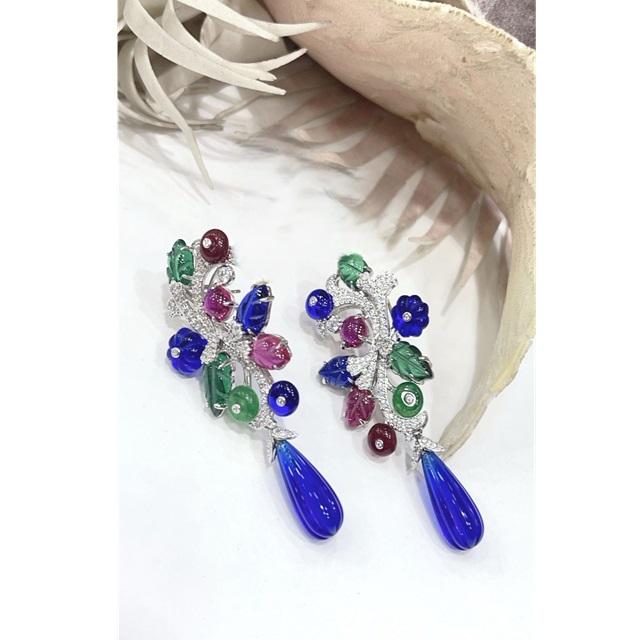 ต่างหูดีไซน์เนอร์ประดับเพชรซิคอนทรงดอกไม้ชุบเงิน เครื่องประดับแฟชั่นสำหรับผู้หญิงสำหรับงานแต่งงานและงานปาร์ตี้