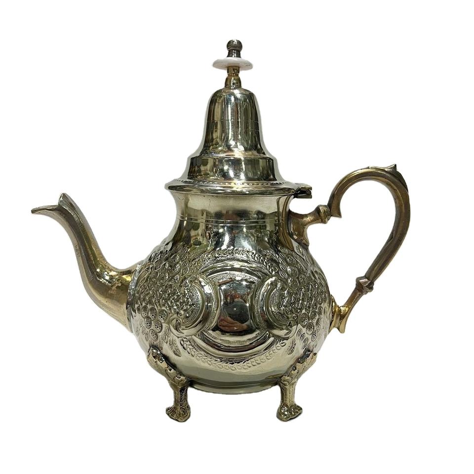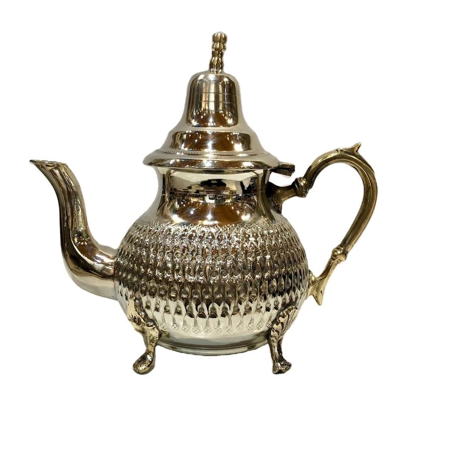 กาน้ำชาทองเหลืองสไตล์ดีไซเนอร์ ทำด้วยมือ ผิวขัดเงาเรียบเนียน พร้อมลวดลายบนตัวกาน ใช้เป็นของตกแต่งสุดหรู