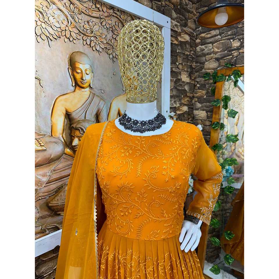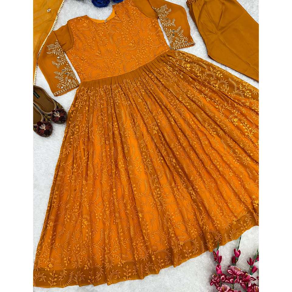 ชุดเดรส Anarkali ดีไซน์เก๋พร้อมกางเกงและผ้าคลุมไหล่ ชุดราตรีหรูหราสำหรับงานปาร์ตี้