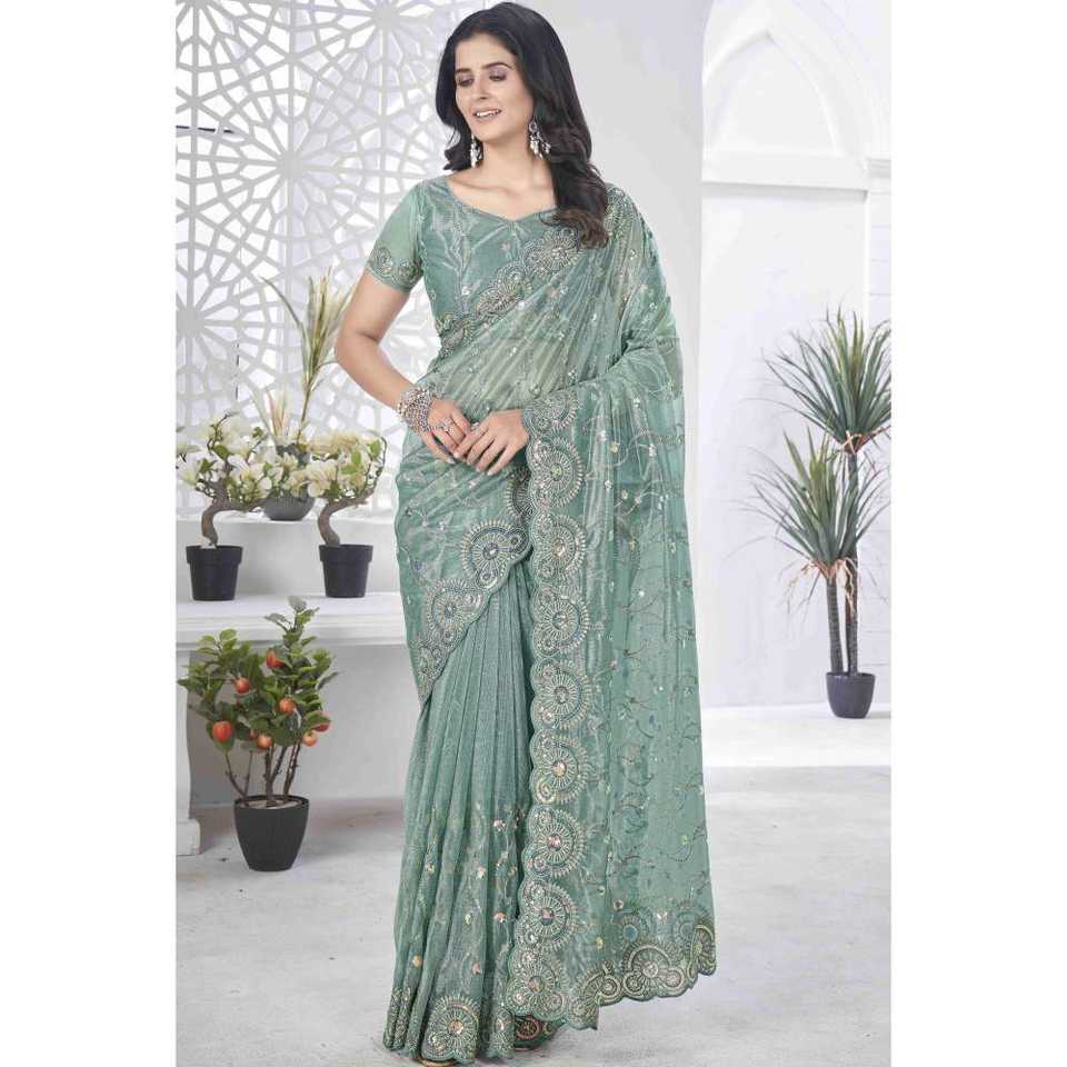 ชุดส่าหรีสำหรับใส่ไปคลับงานปาร์ตี้งานปักด้ายดีไซน์สวยสง่า