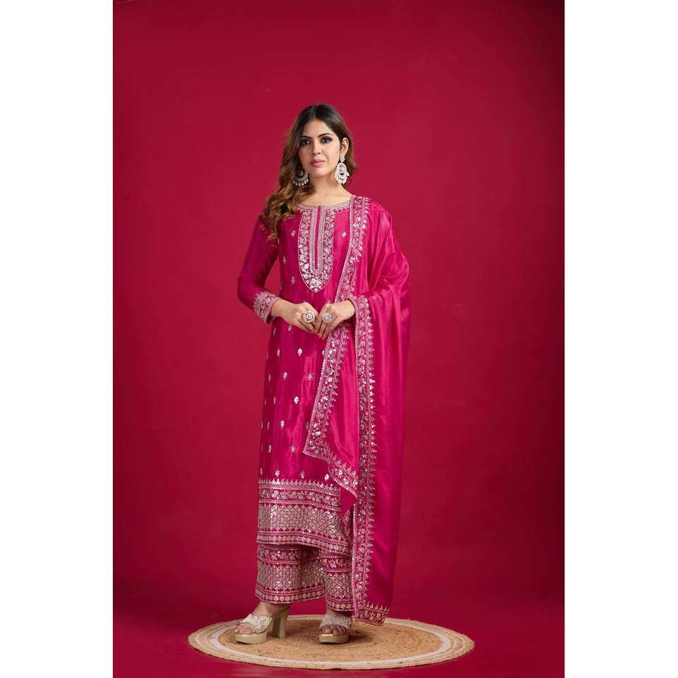 ชุดออกแบบด้านบนด้านล่างและ dupatta พร้อมชุดปักลำดับไซส์ XL