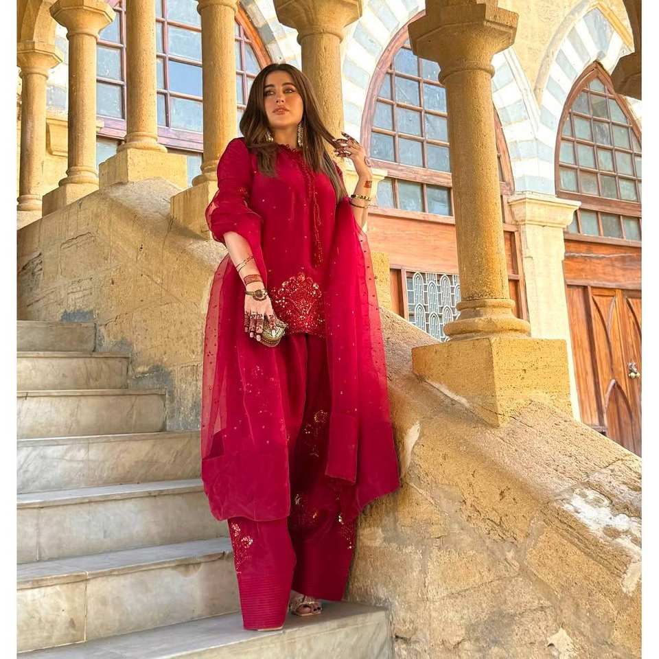 ชุดออกแบบด้านบนด้านล่างและ dupatta พร้อมงานเย็บปักถักร้อยลำดับขนาด XL