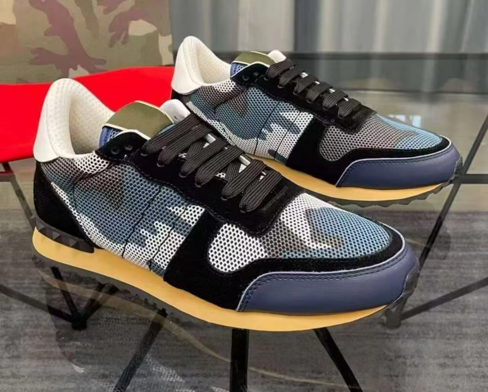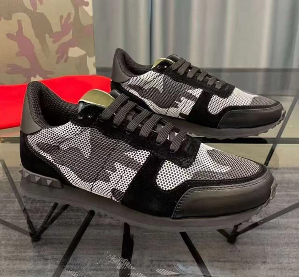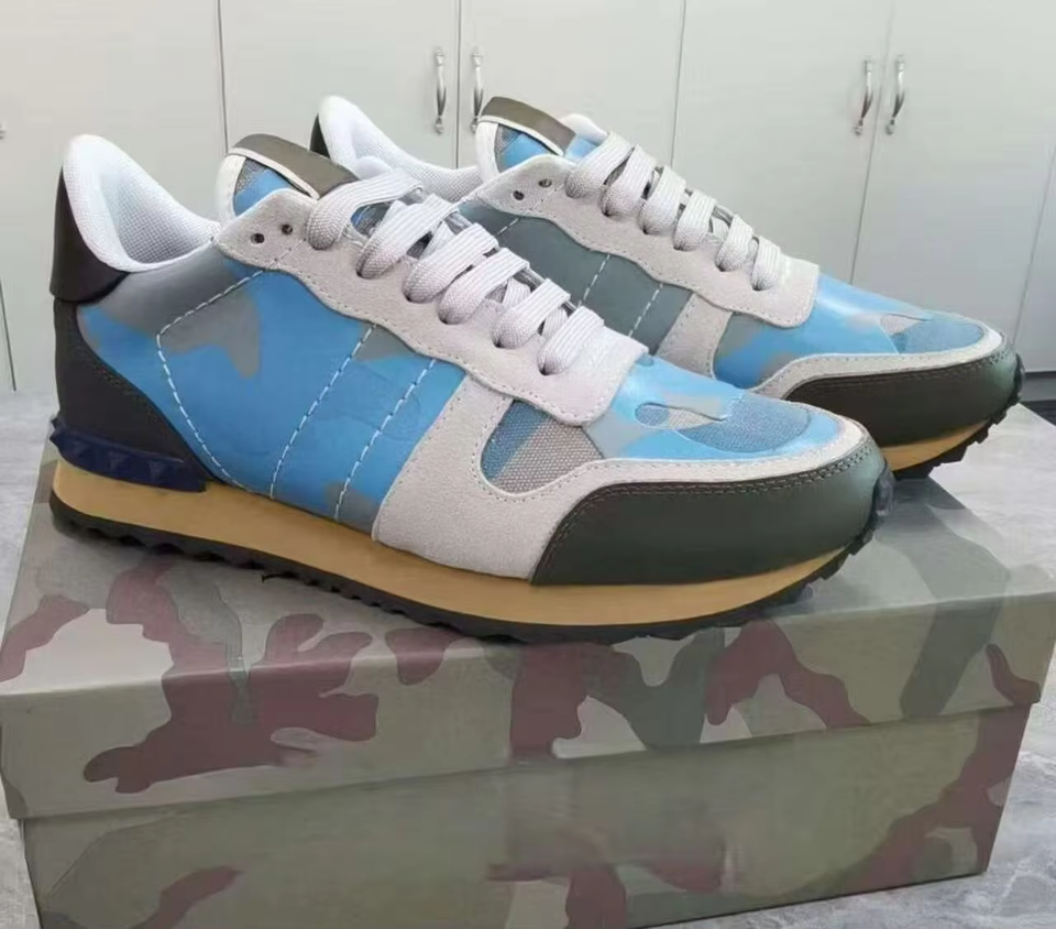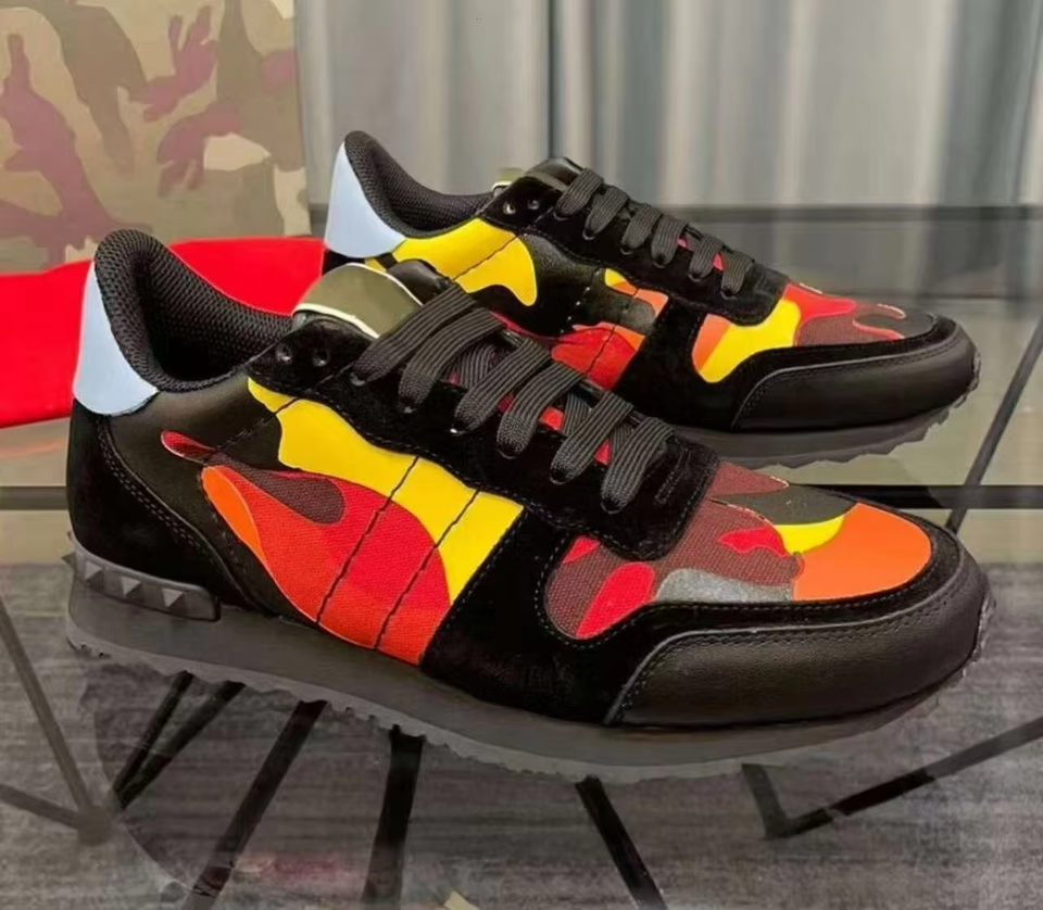 Designer Top Stud Genuine Leather Camouflage Mens Casual Shoes Top Quality Women's Walking Shoes Fall Outdoor Hiking Shoes