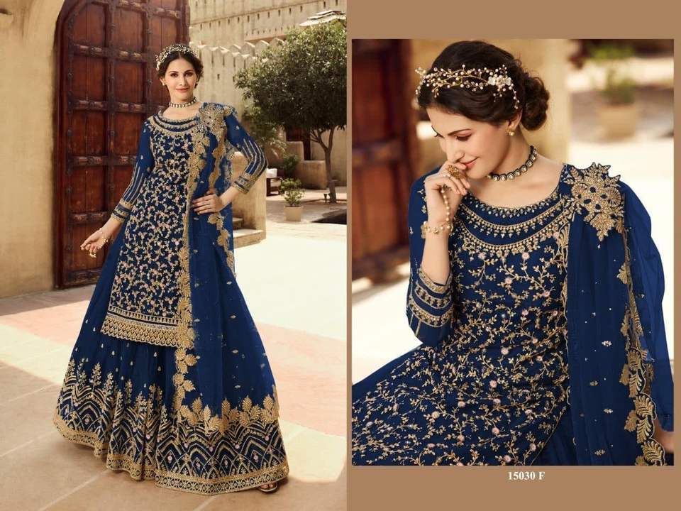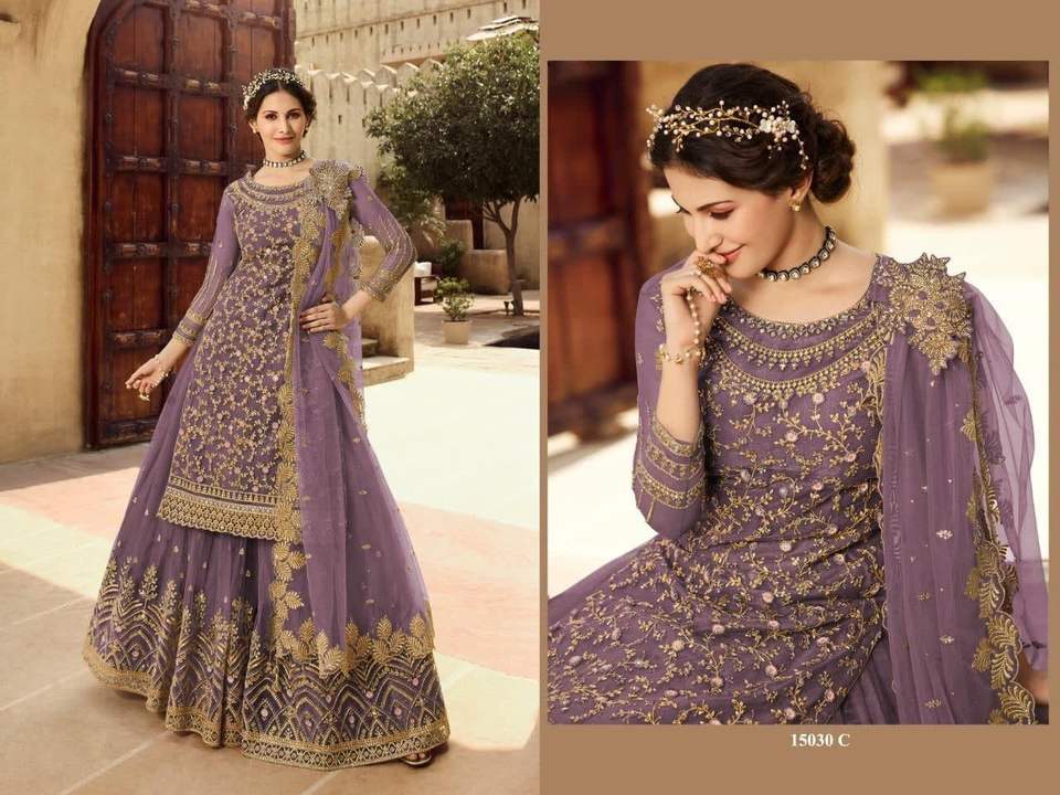 การออกแบบ:Designer ปากีสถาน Sharara สูทเย็บปักถักร้อยหินทำงาน