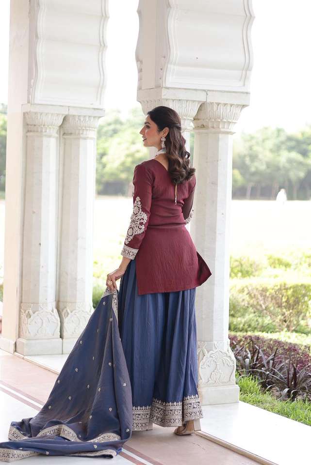 ชุดเสื้อนักออกแบบชุด Sharara พร้อมการปักลายชุด Sharara อินเทรนด์สำหรับการส่งออก