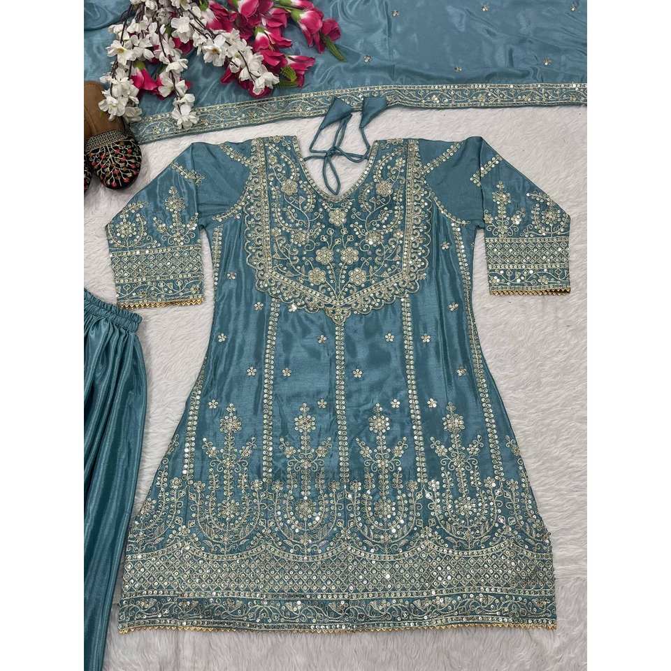ชุดเสื้อผ้าจีนดั้งเดิมของดีไซเนอร์ เสื้อปักลายหรูหราพร้อมกางเกงพลazzo และผ้าคลุมไหล่สำหรับงานปาร์ตี้