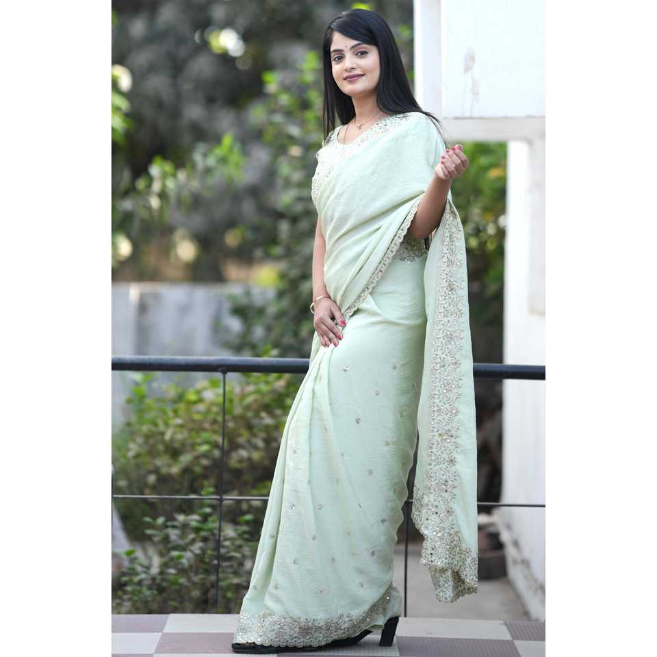 ผ้าส่าหรีแบบจีนดั้งเดิมพร้อมงานปักด้ายและงานกระจกจริงดีไซน์เนอร์