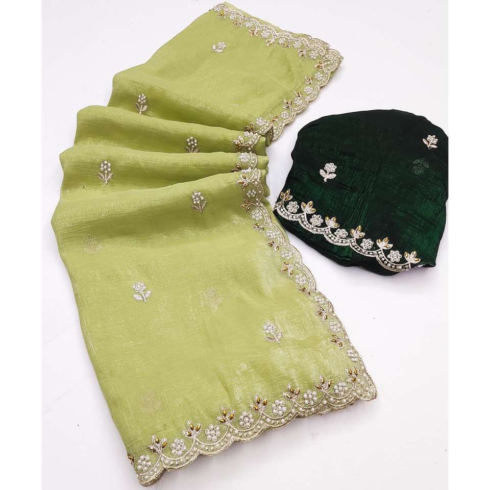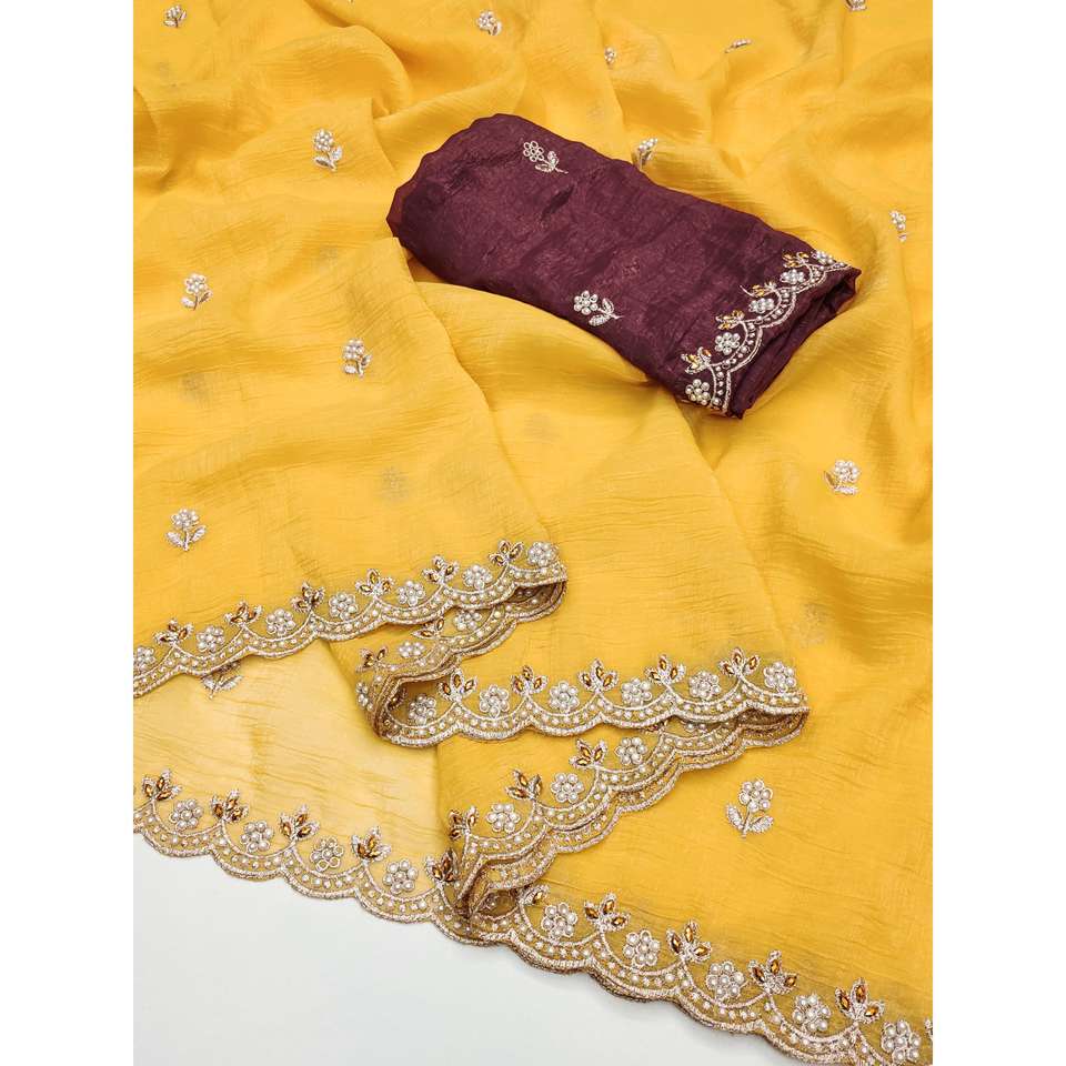 ชุดส่าหรีแบบดั้งเดิมของจีน ดีไซน์เนอร์ออกแบบ พร้อมงานปักและไข่มุกโมติทำมือ