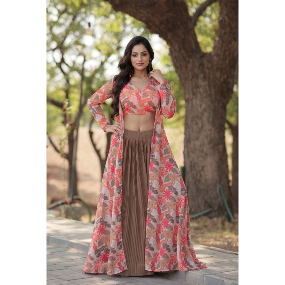 Georgette lehenga choli หนังสังเคราะห์แท้แบบดั้งเดิมจากนักออกแบบใหม่วัสดุถักทอแน่นสำหรับงานแต่งงานและงานปาร์ตี้