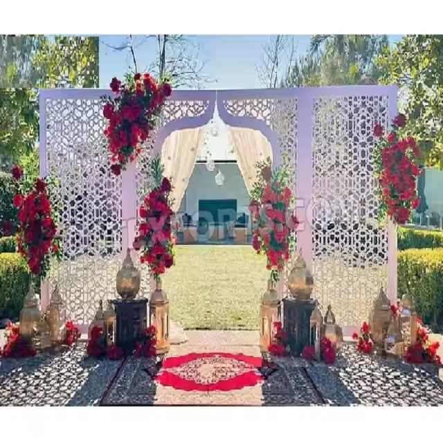 แผงโลหะตัดเลเซอร์ลายอาหรับแบบดั้งเดิมและทันสมัยสำหรับงานแต่งงาน งานเลี้ยง ขายดี ฉากหลังงานแต่งงานมุสลิมพร้อมขาตั้ง สหรัฐอเมริกา