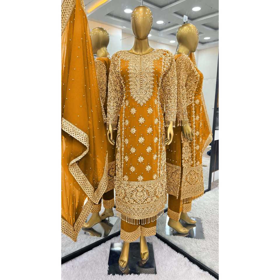 ชุดมุสลิมแบบดั้งเดิมและเครื่องประดับ - เสื้อ-กางเกง และผ้าคลุมไหล่ พร้อมงานปักเลื่อม