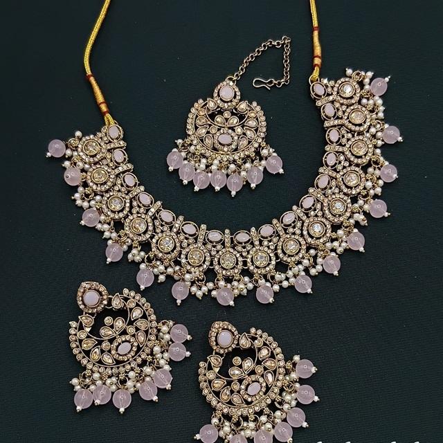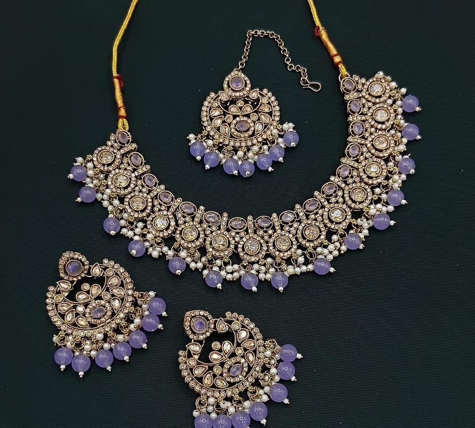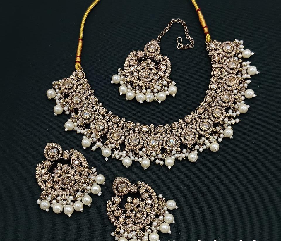 ชุดเครื่องประดับโชกเกอร์หรูหราทันสมัยพร้อมต่างหูและทิกก้าพร้อมชุดเครื่องประดับไข่มุกสำหรับผู้หญิงสำหรับงานแต่งงาน
