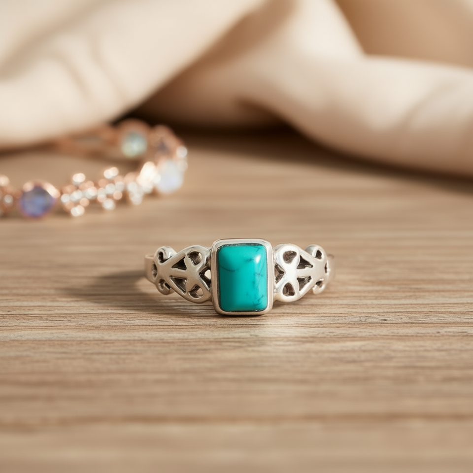 แหวนแฟชั่นดีไซน์เนอร์สีเทอร์ควอยซ์ น้ำหนัก 3.2 กรัม