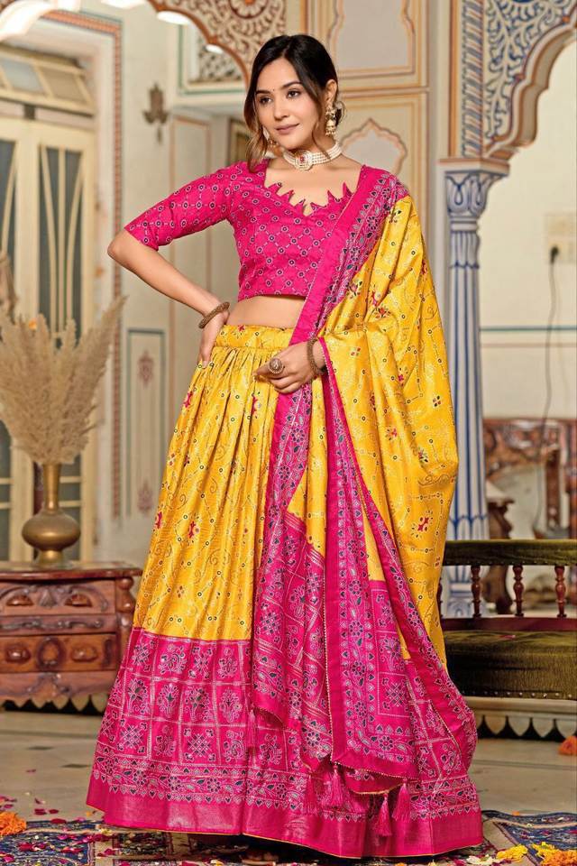 ชุดเลเฮนกาโชลีเจ้าสาวผ้าไหมทัสซาร์ ดีไซเนอร์ | ชุดแต่งงานปักมือ