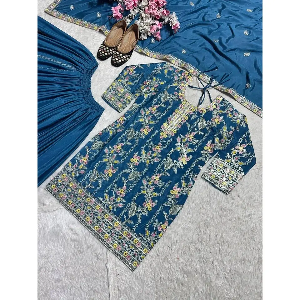 Top Fabric:Pure Heavy Chinon Silk with heavy embroidery