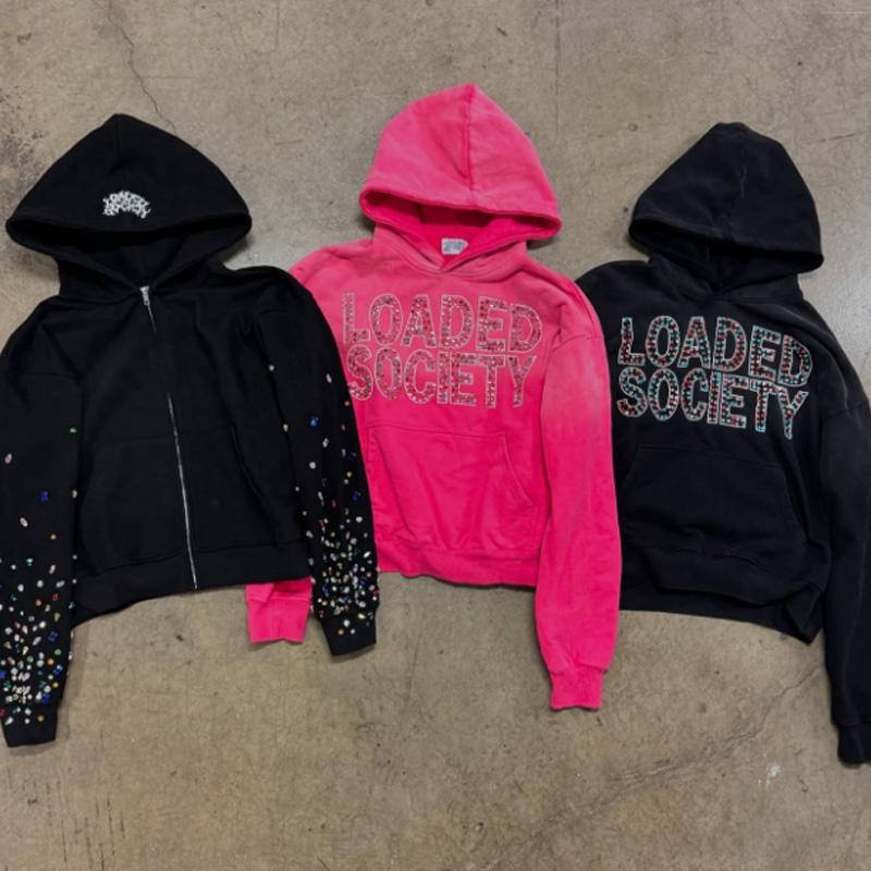เสื้อฮู้ดดี้สตรีทแวร์ทันสมัย ผ้าฟลีซผ้าฝ้าย 100% พิมพ์ลายดิจิทัล ประดับคริสตัลและเพชรเทียม สำหรับฤดูหนาว ดีไซน์เนอร์ ยูนิเซ็กส์