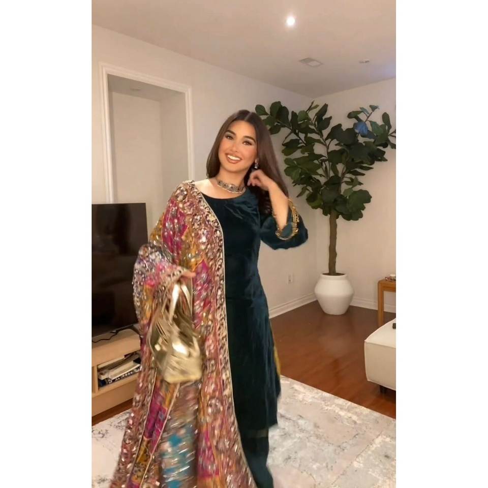 ชุดเสื้อและล่างกำมะหยี่สีเขียวล้วนจากนักออกแบบ