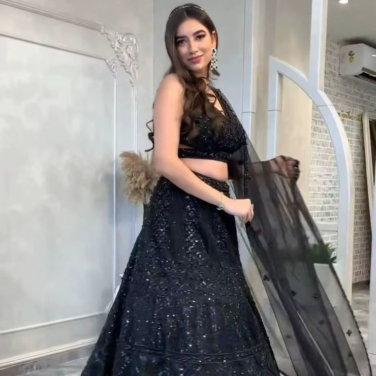 ชุดเลเฮนกาโชลีสำหรับงานแต่งงาน ดีไซน์เนอร์ออกแบบ พร้อมงานปักเลื่อม คันแคน และผ้าปาตตาขนสัตว์เทียม ยืดหยุ่นได้ เหมาะสำหรับงานปาร์ตี้