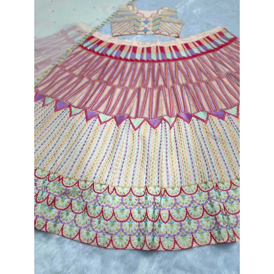 Designer Wedding Lehenga Set with Embroidered Choli and Dupatta Thread Work Accents