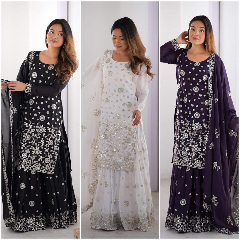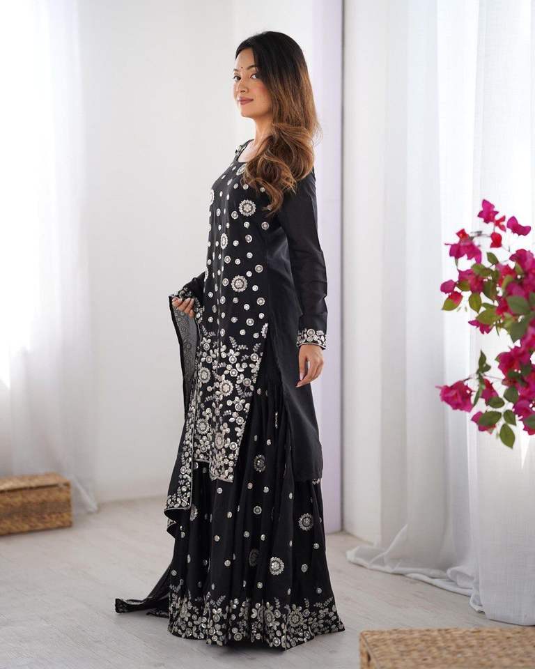 ด้าย georgette ดาวกับลำดับการทำงานด้านบน sharara & dupatta