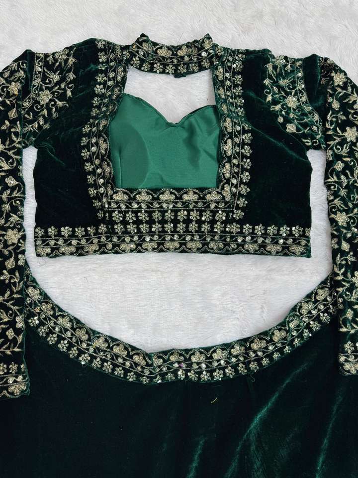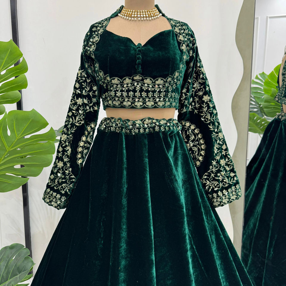 ชุดงานแต่งงานออกแบบสวม lehenga choli กับด้ายและลำดับการทำงาน