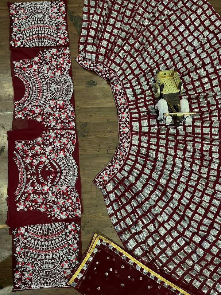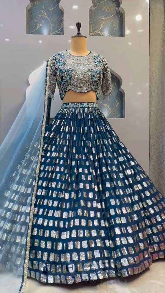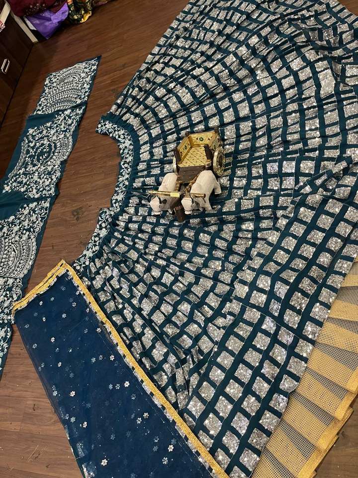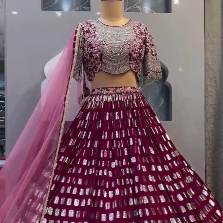 ชุดออกแบบงานแต่งงาน lehenga กับเลื่อมด้ายกระป๋องและชั้นผ้าใบ