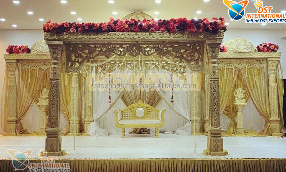 ออกแบบงานแต่งงานไม้ Mandap สำหรับ King Queen แต่งงาน Gorgeous ไม้ Mandapam ตกแต่ง Dream งานแต่งงานไม้ Mandap Setup