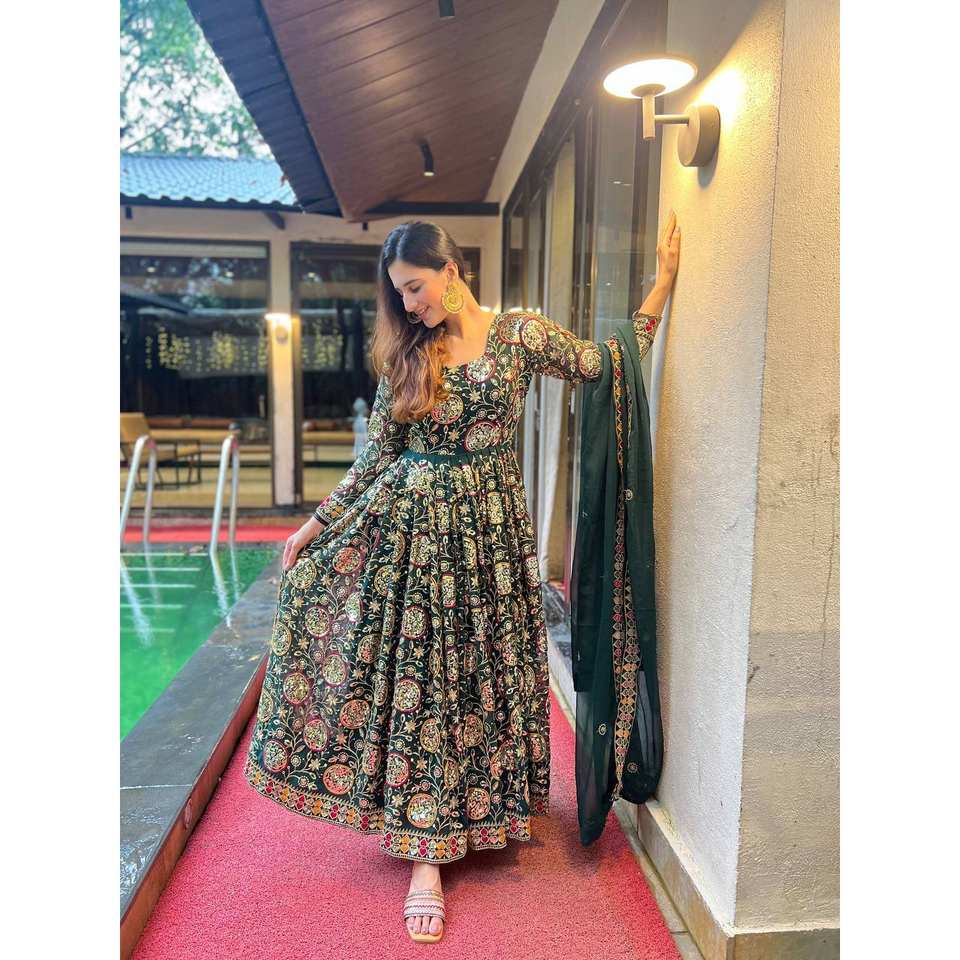 ชุดคลุมอนาร์คาลีของผู้หญิงดีไซน์เนอร์พร้อมที่ก่นและดูปองตาชุดแฟนซีใหม่