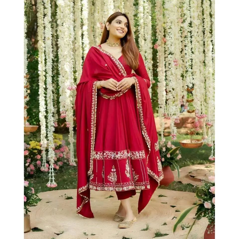 Roman Fabric Embroidery sequence Zari WorkDUPATTA