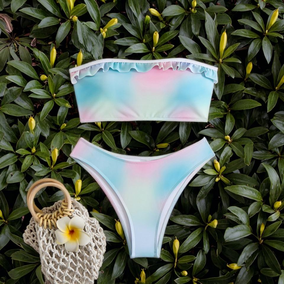 ชุดบิกินี่แบบ Bandeau สำหรับผู้หญิง ดีไซน์เนอร์ 2 ชิ้น ลายเรียบ แห้งเร็ว