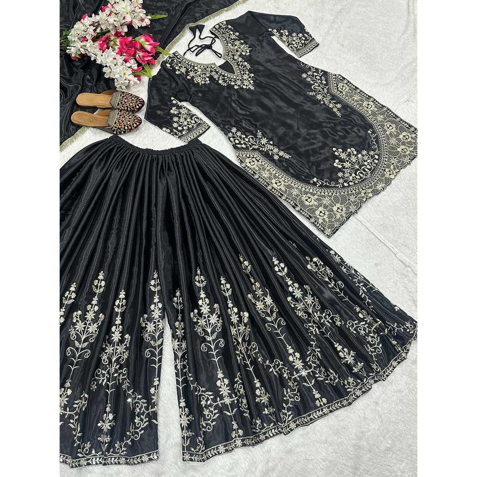 ชุดสูทสำหรับงานปาร์ตี้ไซส์ M สีดำของผู้หญิงดีไซน์เนอร์ประกอบด้วยเสื้อชาราพลาซโซ