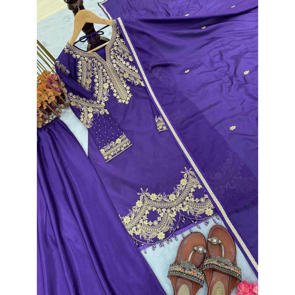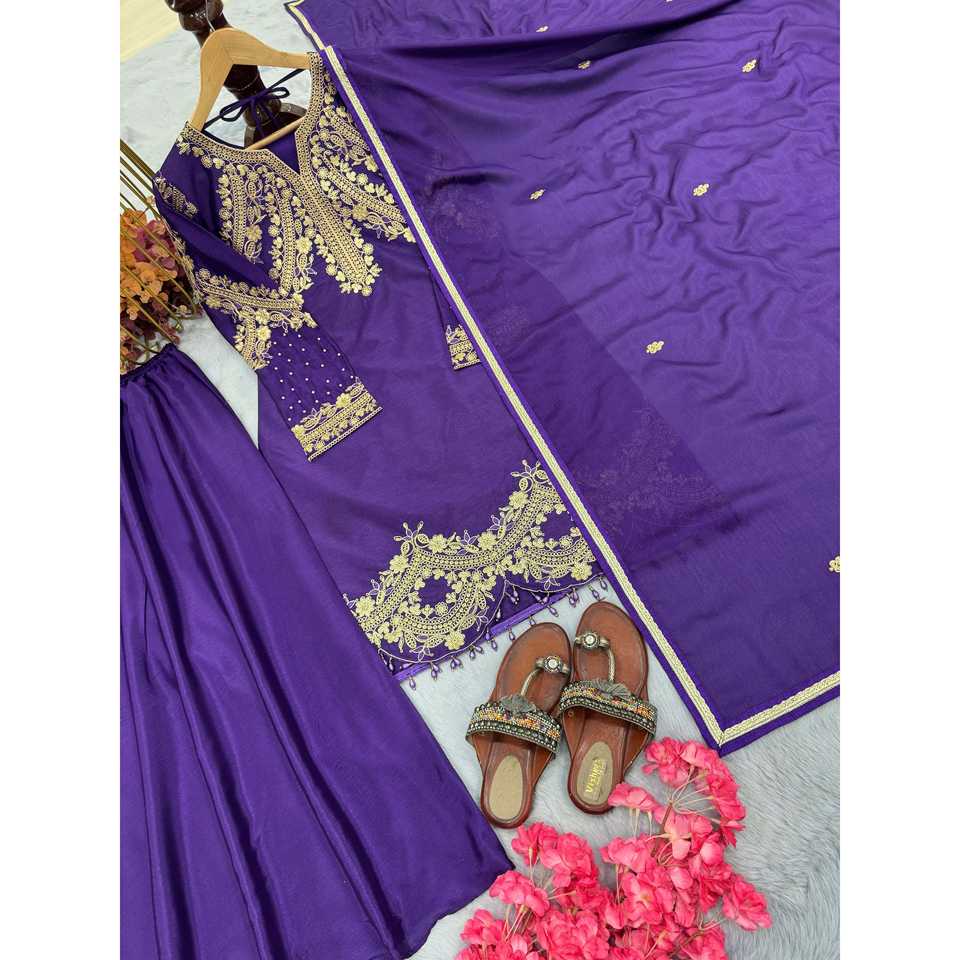 Designer Women's Purple Size M Elegant Plazzo Top & Dupatta Set Stylish Embellished Party Wear