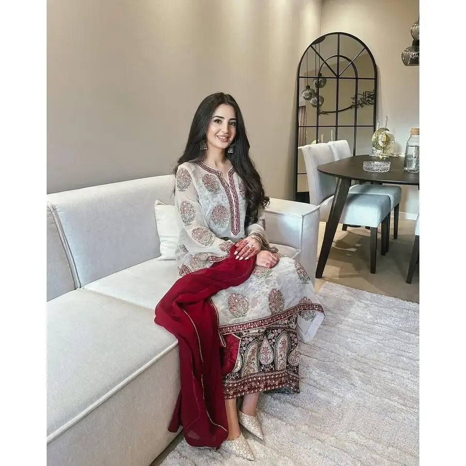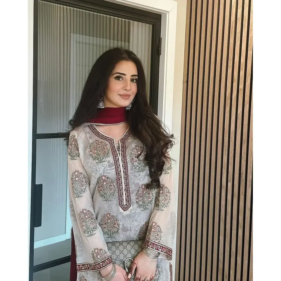 Heavy French Crepe with digital print and embroideryPlazzo Fabric