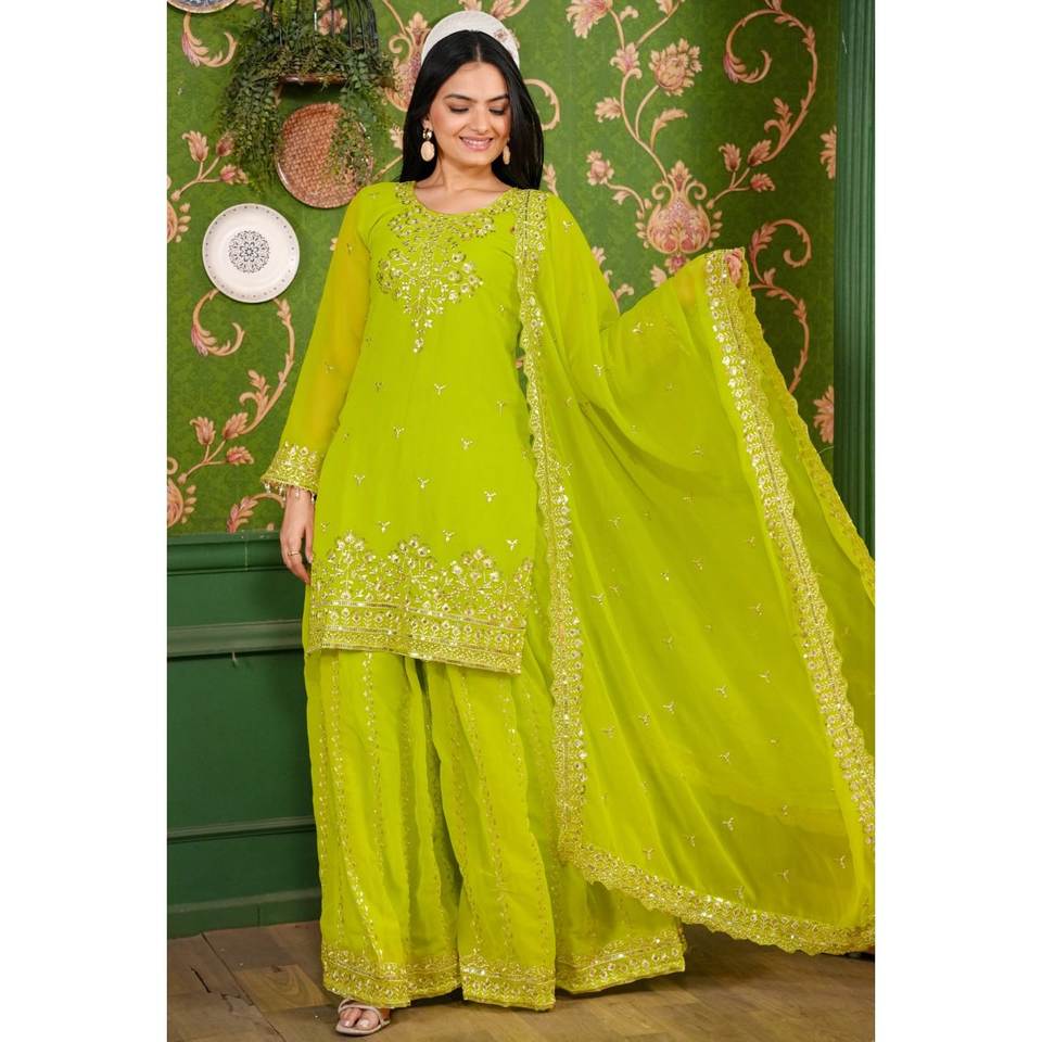 ชุด georgette Sharara ออกแบบสำหรับผู้หญิงปักด้วยลำดับการทำงาน