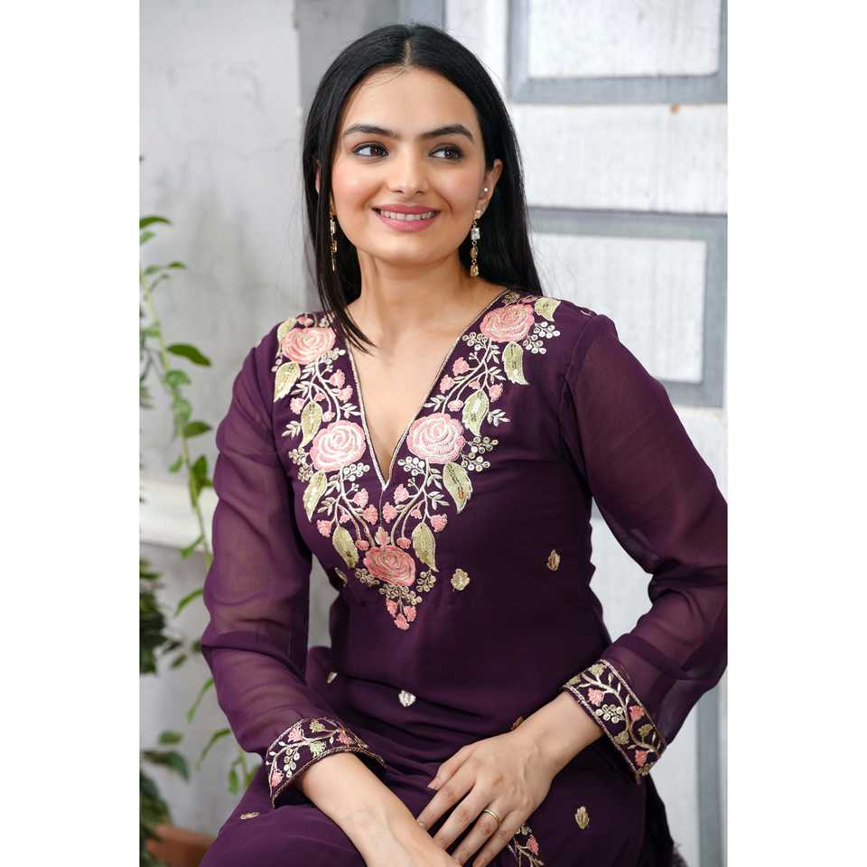 ชุดสูทผ้าจอร์เจียสำหรับผู้หญิงดีไซน์เนอร์ปักลวดลายสวยงาม